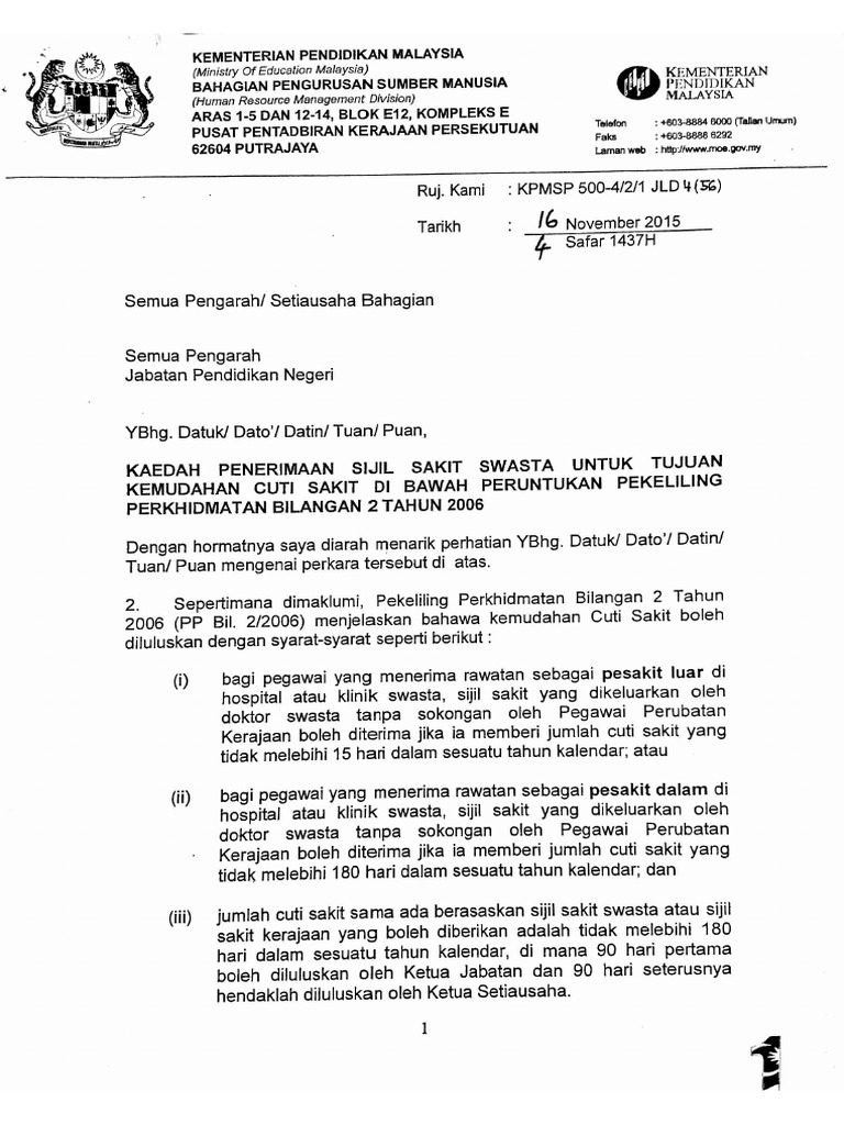Pindaan Peraturan Berkaitan Penerimaan Sijil Sakit Swasta Untuk from img.yumpu.com Cuti sakit diberi oleh ketua jabatan atau kuasa tertentu apabila disahkan sakit oleh pegawai perubatan berdaftar, lembaga perubatan atau panel 90 hari setahun termasuk 15 hari cuti sakit swasta dengan kelulusan ketua jabatan; Namun jika penyakit sudah datang, maka sebaiknya anda beristirahat 10. Apabila sakit, anda berhak mendapatkan cuti. Subseksyen 37 (c) akta kerja 1955, kelayakan cuti bersalin yang dibayar elaun adalah dihadkan sehingga 5 orang anak sahaja. Tentu tidak ada orang yang menginginkan penyakit datang menghampiri tubuhnya. Sekiranya pasangan bekerja dengan syarikat swasta 1. Fesibility study (fs) atau study kelayakan jika dalam penyebutan bahasa indonesia, merupakan salah satu hal yang sangat penting dalam proses sebelum pembangunan sebuah rumah sakit. Hak cuti menstruasi ini pun telah tercantum dalam.