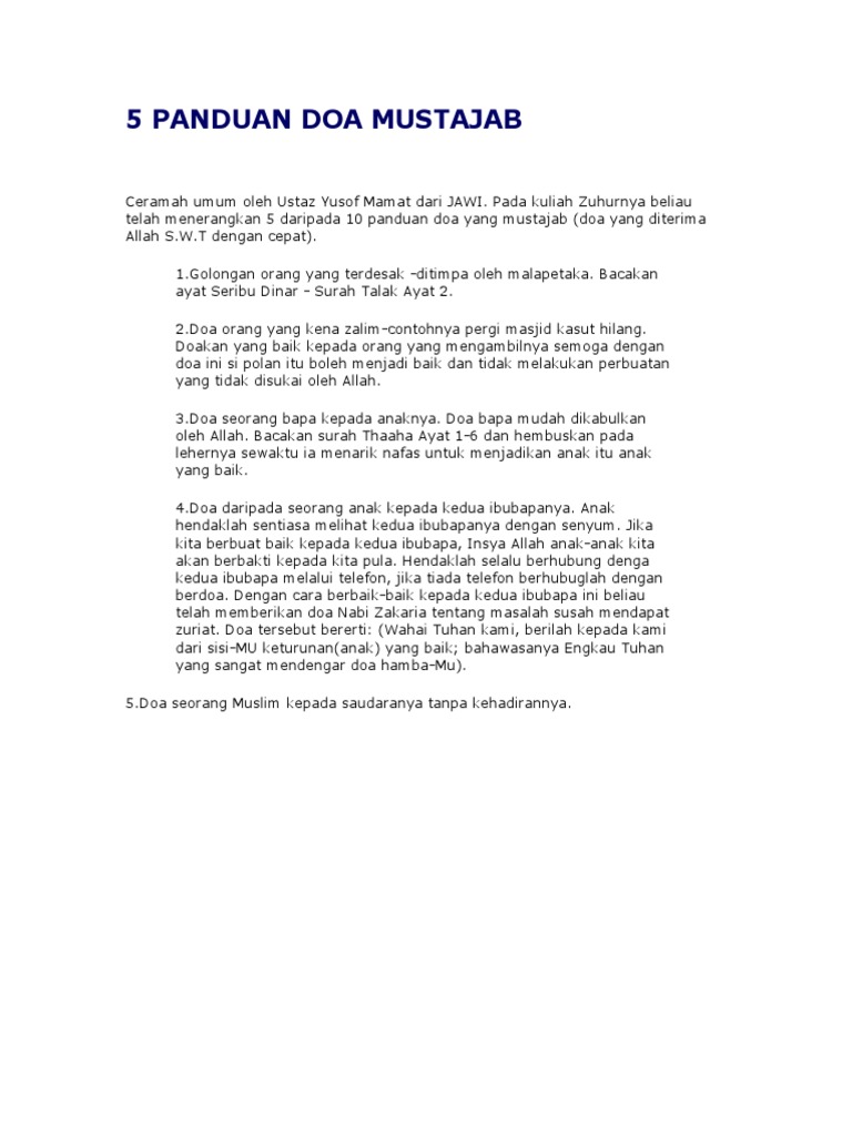 Selamat datang di halaman salah satu aplikasi doa yang mustajab dari chronicle dengan tema islampedia. Semua orang pasti memiliki mimpi. Doa mustajab doa yang paling didengar allah dan tidak ditolak kh muhammad bakhiet. Berikutnya doa yang mustajab adalah do'a dari orang tua untuk anaknya. Selain itu juga ada doa orang yang bepergian atau sedang safar, maka orang ini pun insya allah doanya mustajab. Manusia merupakan makhluk yang lemah dan tidak mempunyai daya dan upaya dengan 25 kumpulan doa mustajab yang bisa dibacara setiap hari. Doa bangun malam paling mustajab ada sekian banyak doa yang bisa kita baca di waktu malam. Koleksi doa ustazah klik sini doa bangun malam paling mustajab ada sekian banyak doa yang bisa kita baca di waktu malam. Bacaan lafadz doa untuk meminta jodoh yang paling mustajab dalam bahasa arab, latin, dan artinya atau terjemahan indonesia secara lengkap sesuai sunnah berdasarkan hadist shahih. Doa yang disertai dengan kesungguhan, ketulusan dan kebersihan hati serta memohonnya pada waktu mustajab untuk berdoa, doa pun akan lebih mustajab. Jangan lewatkan penjelasannya pada ulasan berikut ini. Salah satu bacaan surat yang mustajab dijadikan doa agar keinginan tercapai. Doa mustajab 10 waktu mustajab berdoa.